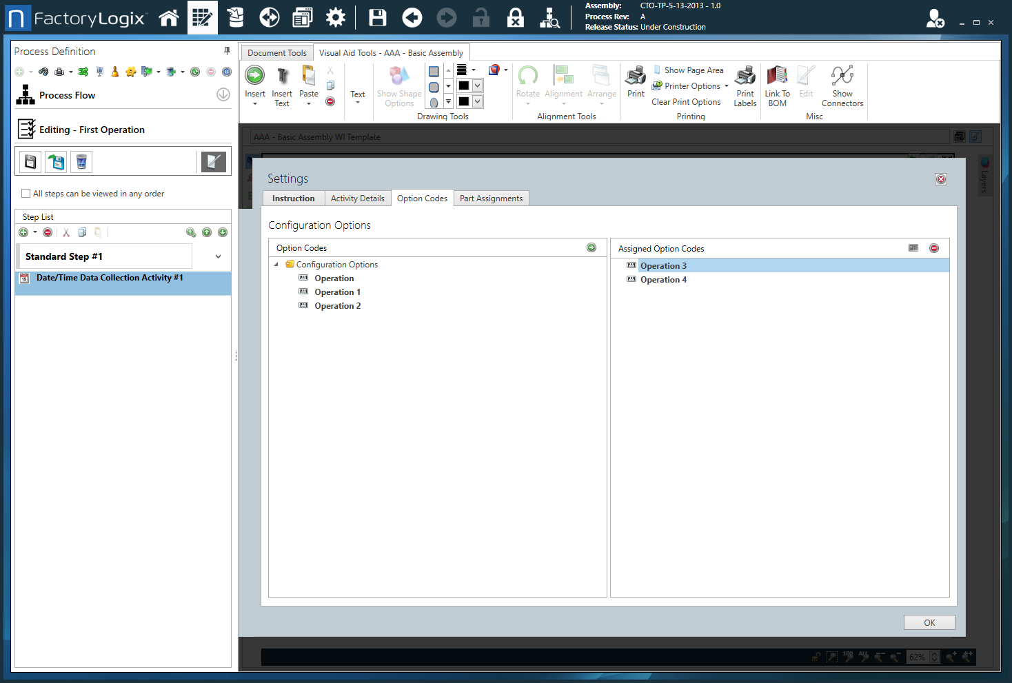 Assigned Option Codes - Displays the option codes assigned to this activity. Use Logical Expression - You can define option codes for an activity in the form of a logical expression (comprised all option codes plus the logical operators: AND, OR, and NOT, plus brackets, to identify precedence). Note For details about option codes, see Option codes for configurable assemblies. |