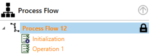 Ehe Sie einen Vorgang ändern können, müssen Sie im Prozessbaum auf Prozessfluss doppelklicken. Ein Vorhängeschloss symbolisiert, dass der Prozessfluss zur Bearbeitung ausgecheckt ist.