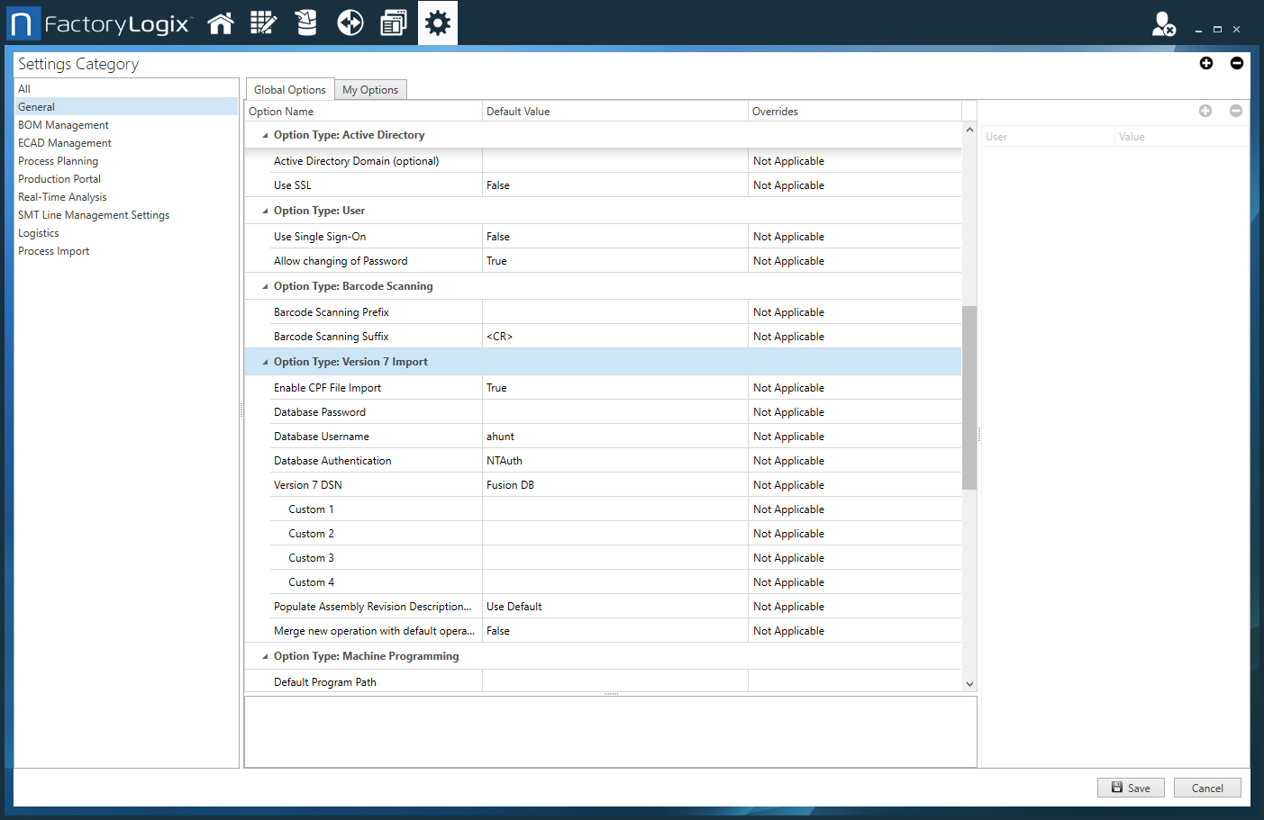 Bevor Sie Baugruppen, Prozessrevisionen oder grafische Hilfsmittel der Version 7 importieren können, müssen Sie einige globale Einstellungen in FactoryLogix konfigurieren.