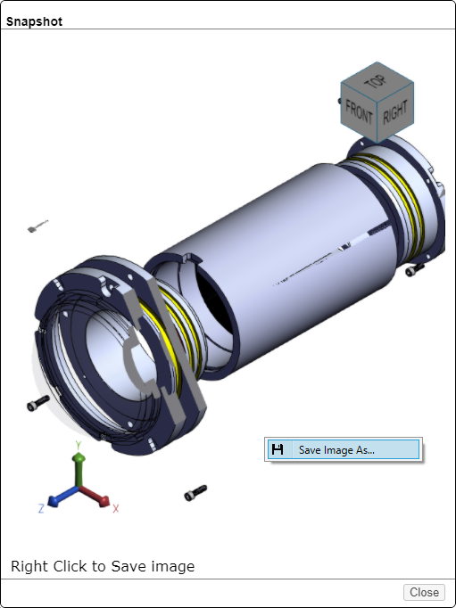 Right-click the 3D CAD image, select Save Image As, select a file location, enter a name for the image, then select Save.