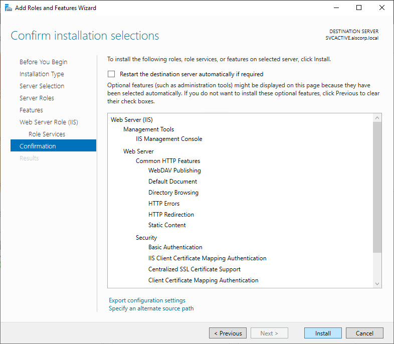 Stellen Sie sicher, dass diese IIS-Funktionen ausgewählt sind: