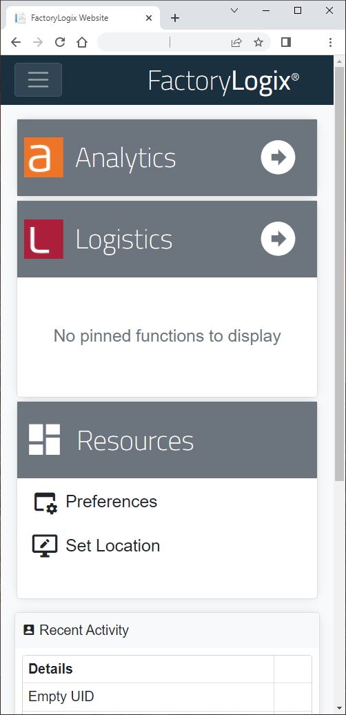 To access FactoryLogix Materials Management, log into the FactoryLogix website (see Log into the website for details.)