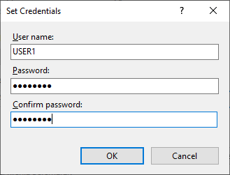 In the Set Credentials dialog, enter the User Name and Password of a local administrator account, confirm the password, then select OK until you return to the main IIS window.