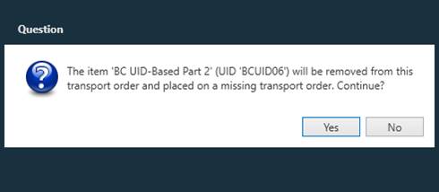 If an item can’t be found and there are no viable alternate UIDs to pull, selecting the Short button will move the specified item to a Missing Transport Order and remove it from the current order. (This is a user permission which must be turned on in order to use the Short feature.)
